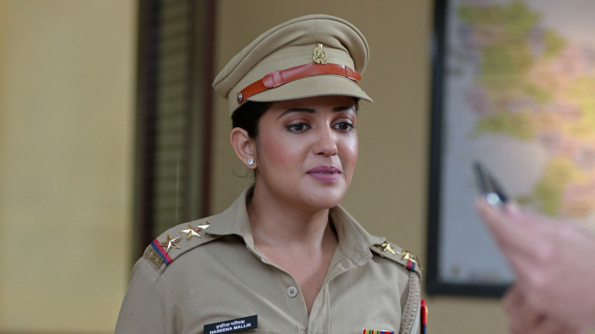 Santosh catches a motorcyclist without a helmet and finds out that he is about to lose his job because he can't speak English. She guarantees that she would do everything in her power to help him retain his work. Later, they are shocked to find Maddam Sir at DSP Anubhav's office exchanging gifts.